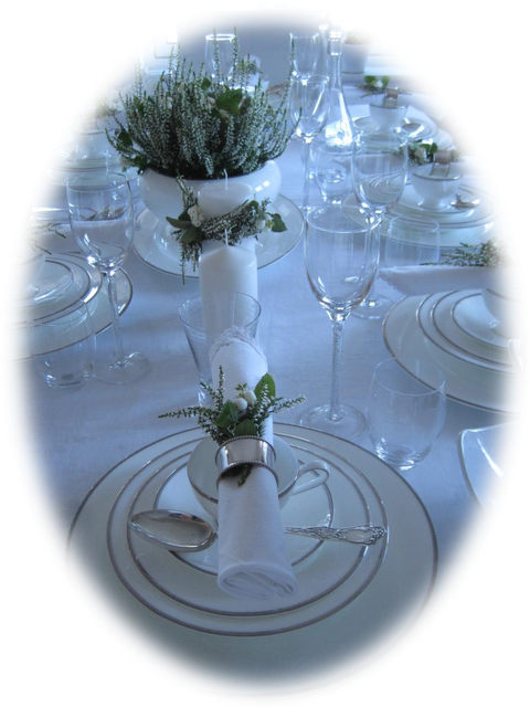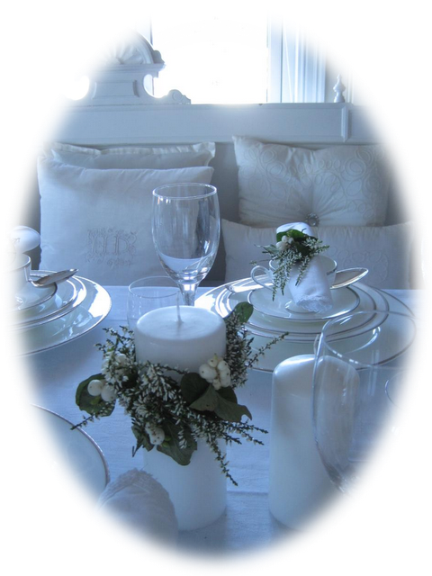 Ha lyng under serviettringen og fest et pakkestrikk rundt kubbelyset og tvinn lyng rundt.