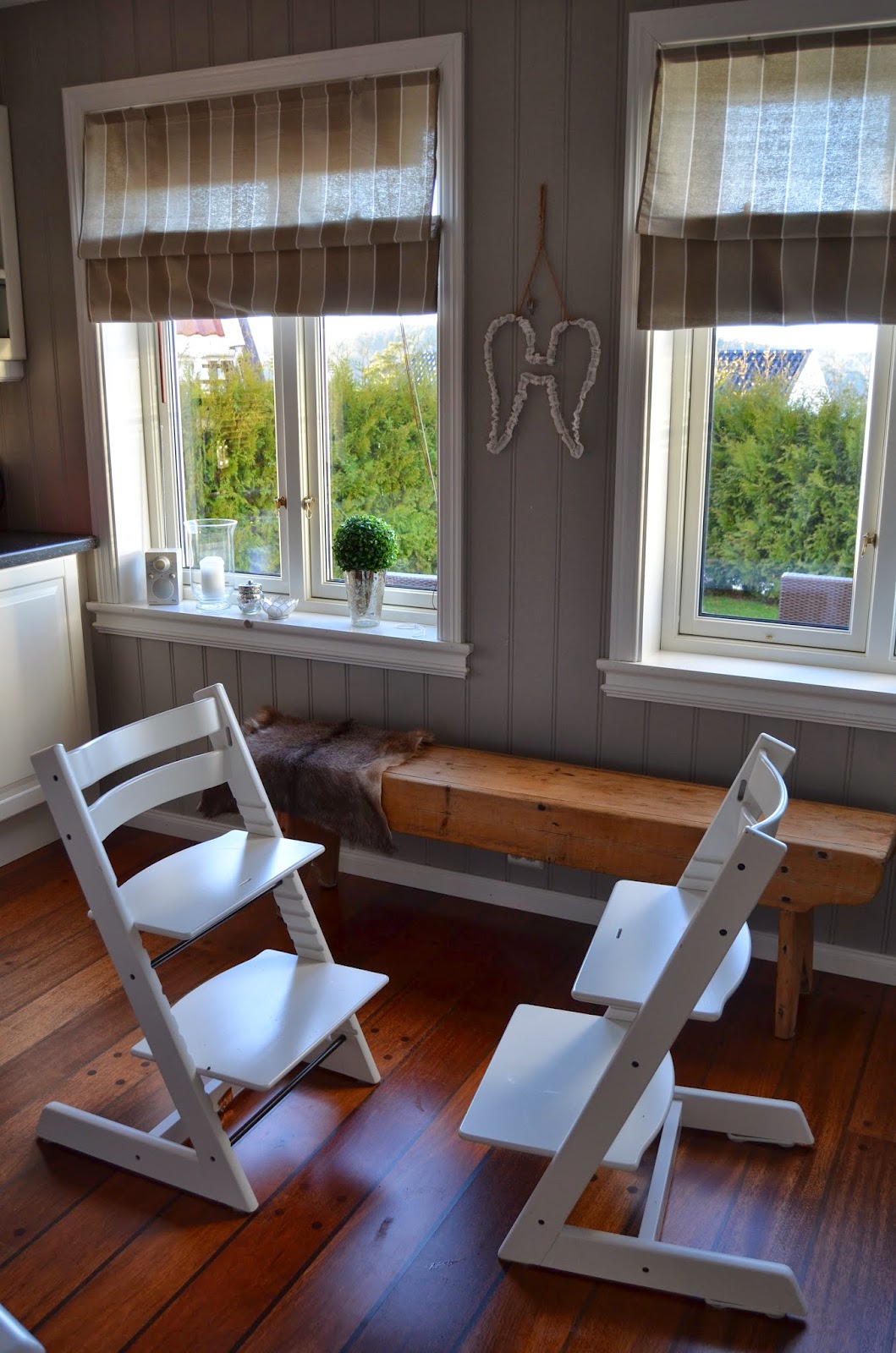 Vi hadde det først i stua, men så flyttet vi det inn på kjøkkenet, men da ble det for lite til 4 stk.
