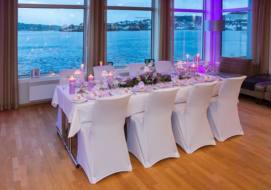 Herlig utsikt, og med lys i taket som matcher bordet!